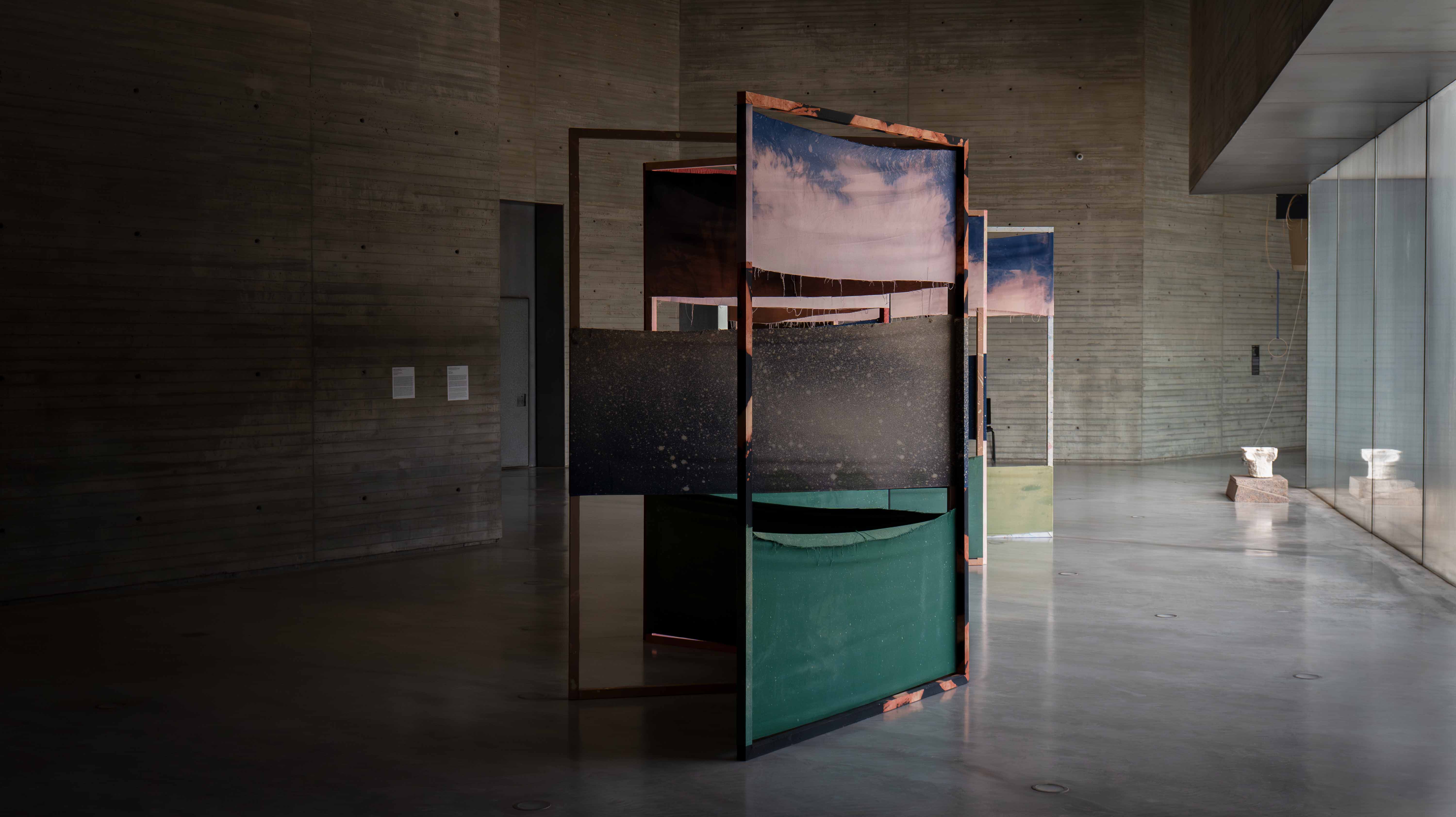 Beaten Earth is a contested site built around the symbolic coexistence with Kapwani Kiwanga¿s installation The Worlds We Tell: Threshold, which remains in the same space as a constant vibration. Inspired by a Bantu cosmology, her structure of wood, stone, pigment, and metal confront us with an urgen question: which stories gain access to the shared space, and which are expelled? Her arquitecture does not delimit, it invites crossing. It reminds us that every history is partial and situated, and that every archive is political.