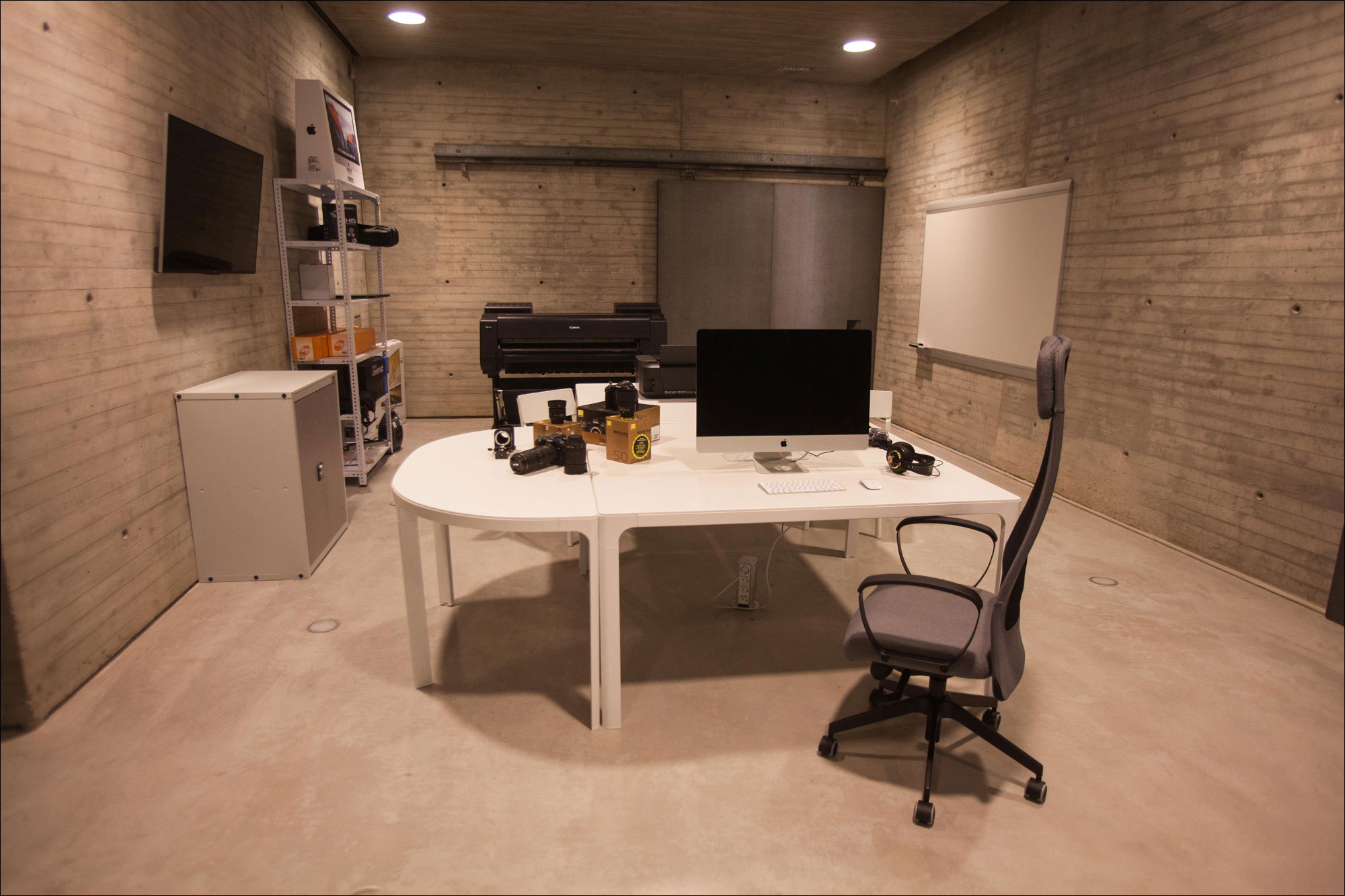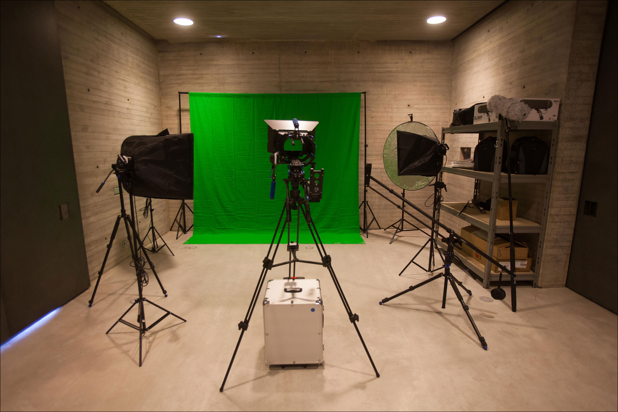 Está dotado de mesas de trabajo y montaje con ordenador de 27 pulgadas MAC y software con últimas versiones para la edición tanto fotográfica como de vídeo y sonido, dos cámaras de fotos Nikon D500, grabadora en 4K, así como objetivos 16-80, 18-105, 35, 50, 70-200 mm y filtros necesarios, además de estabilizador de vídeo, macro, fuelle para macro, fotómetro, pértiga extensible, micrófono de cañón para cine, vídeo y TV, grabador de sonido, trípodes, grúa cámara, parasol, estabilizador para hombro, caja de luz, diversos cromas, reflectores, digitalizadora Super8, impresora fotográfica A3 e impresora para ploteado de hasta 44 pulgadas.