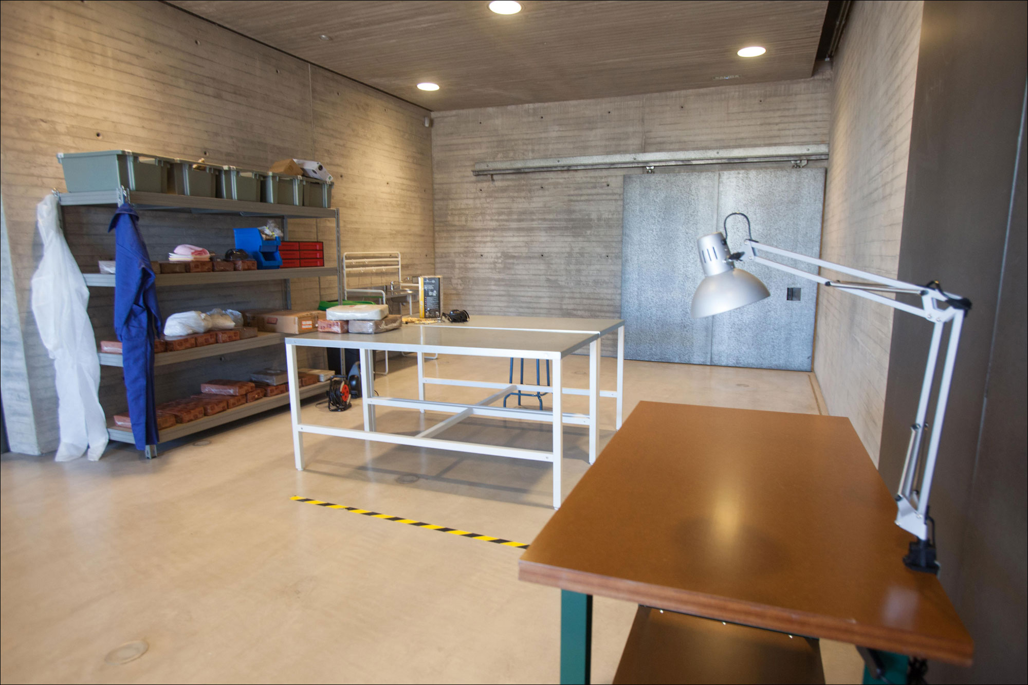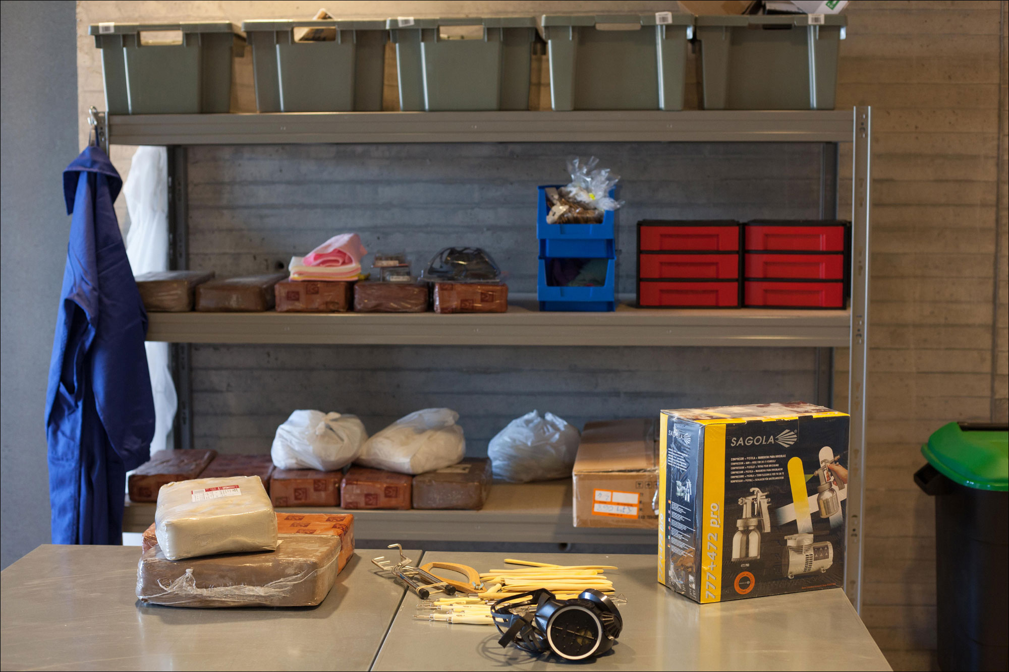 El taller estará dotado de mesas y bancos de trabajo con cajoneras además dispone de un horno cerámico de 110 litros, torno eléctrico, torneta, pistola cerámica, lámparalupa así como instrumentales de diferentes formas y tamaños y materiales de protección. También tiene acceso a la zona de ordenadores e impresoras y escáner A3.